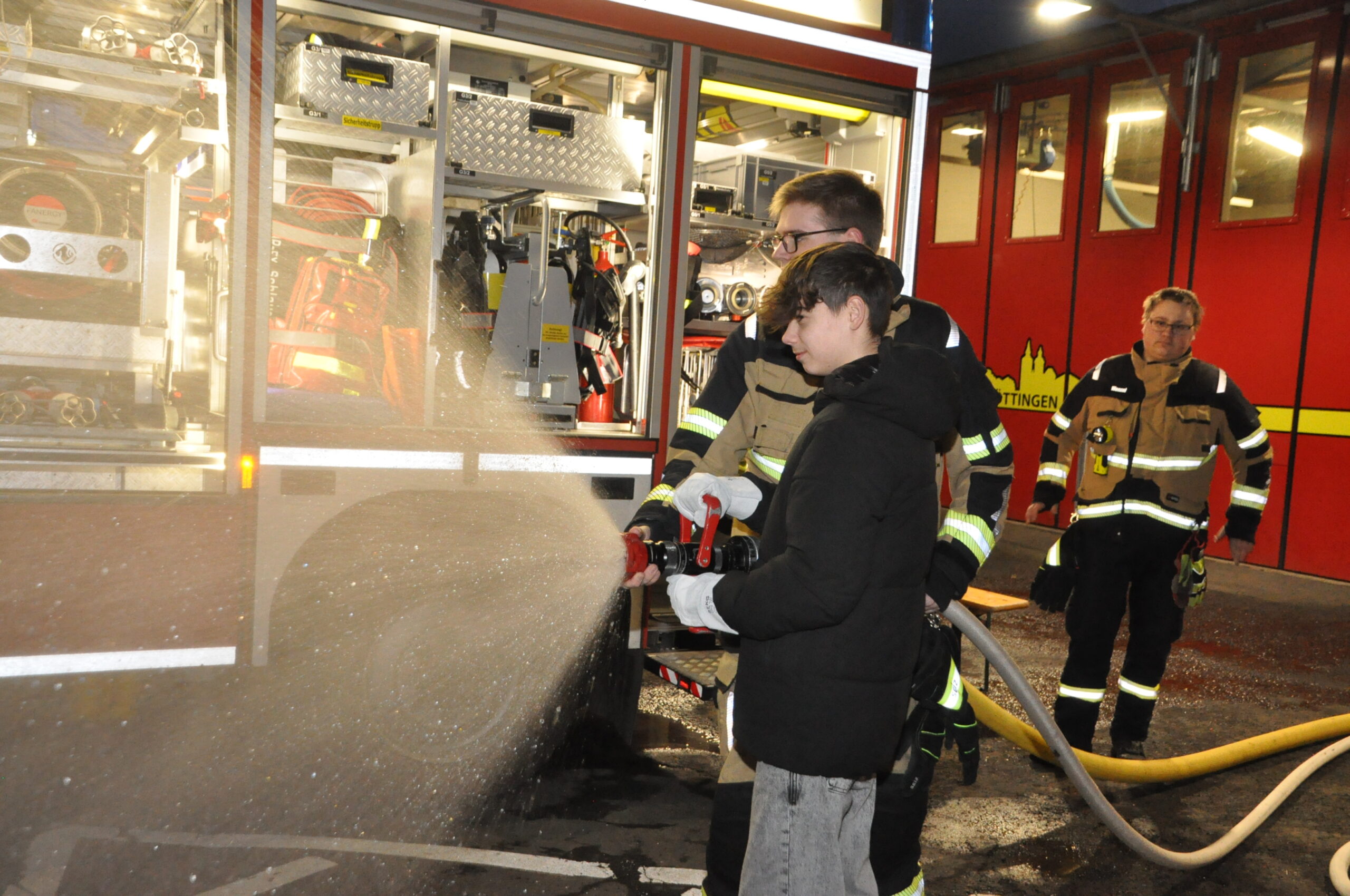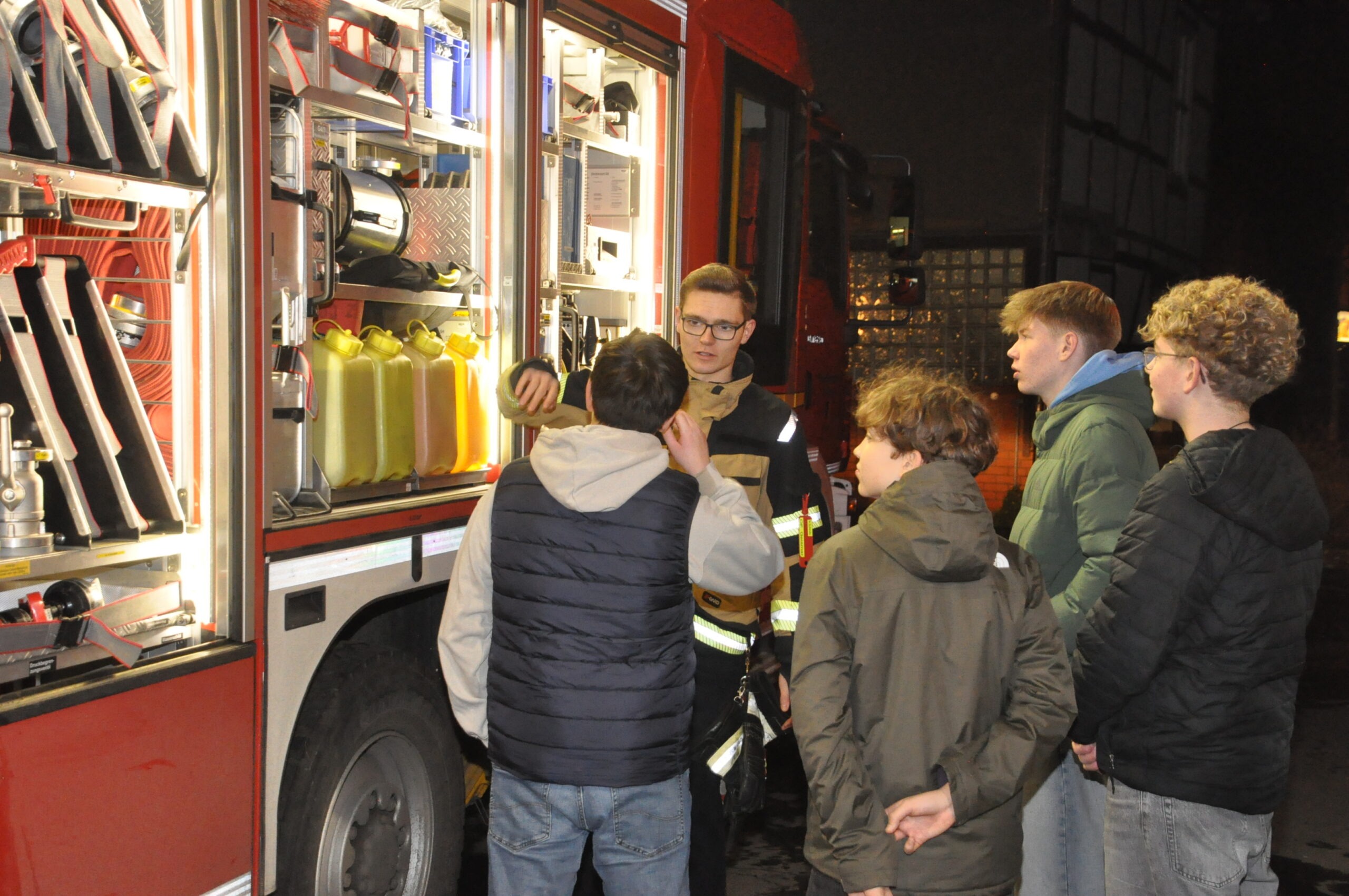 Nachdem wir im vergangenen Jahr zur Brandschutzunterweisung der Konfirmanden bei der Stephanus Gemeinde waren, konnten wir in diesem Jahr am Mittwoch, den 29. Januar von 16.30 Uhr bis 18.00 Uhr rund 20 Konfirmanden mit ihrem Pastor Matthias Opitz auf dem Hof unseres Feuerwehrhauses an der Kerllsgasse begrüßen. Hier bei uns hatten wir dieses mal wesentlich mehr Zeit und Möglichkeiten, die Jugendlichen das Feuerwehrwesen zu erklären. Wir hatten drei verschiedene Stationen vorbereitet, sodass dann auch drei Gruppen gebildet werden konnten. Zum einen ging es um die Handhabung von Feuerlöschern. Bei der zweiten Station wurde in der Halle die persönliche Schutzausrüstung (PSA) incl. Atemschutz vorgeführt. Hier konnte auch jeder sich mal Jacke, Helm und Hose oder ein Wathose anziehen. Auf dem Hof wurde unser LF 20 KatS und das TroTLF 16 präsentiert, sowie Schläuche ausgerollt oder mit dem Strahlrohr hantiert werden. Bevor es an die Stationen ging, wurden die Konfirmanden vom Ortsbrandmeister Dirk Tetzlaff über unsere ehrenamtliche Arbeit informiert. Den Jugendlichen hat es nach unserer Meinung sehr viel Spaß gemacht. Sie zeigten viel Interesse und waren mit Eifer beim „löschen“ bzw. am Strahlrohr dabei. Vielleicht sehen wir den ein oder anderen Jugendlichen beim Dienst in der Jugendfeuerwehr wieder.
