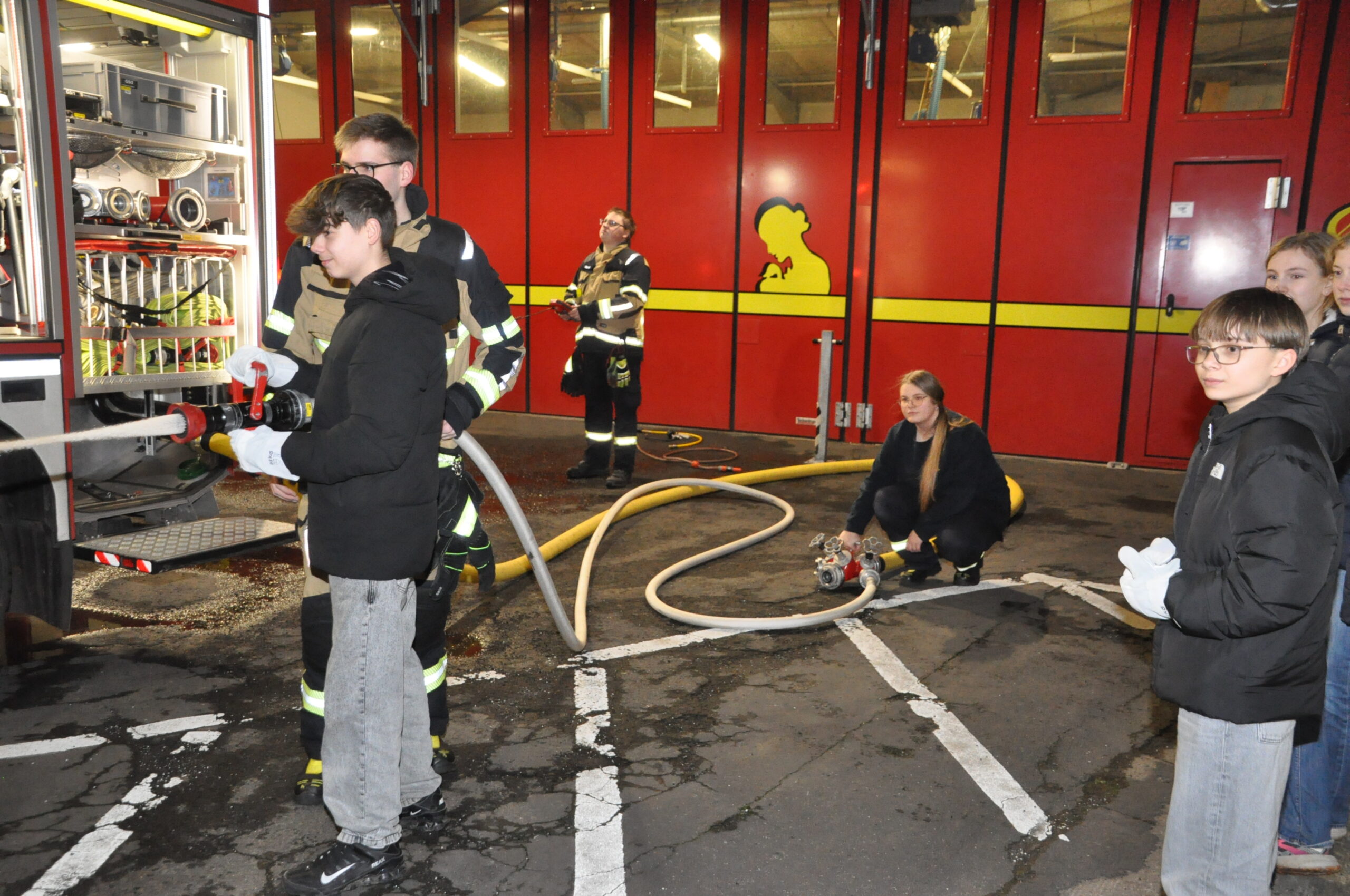 Nachdem wir im vergangenen Jahr zur Brandschutzunterweisung der Konfirmanden bei der Stephanus Gemeinde waren, konnten wir in diesem Jahr am Mittwoch, den 29. Januar von 16.30 Uhr bis 18.00 Uhr rund 20 Konfirmanden mit ihrem Pastor Matthias Opitz auf dem Hof unseres Feuerwehrhauses an der Kerllsgasse begrüßen. Hier bei uns hatten wir dieses mal wesentlich mehr Zeit und Möglichkeiten, die Jugendlichen das Feuerwehrwesen zu erklären. Wir hatten drei verschiedene Stationen vorbereitet, sodass dann auch drei Gruppen gebildet werden konnten. Zum einen ging es um die Handhabung von Feuerlöschern. Bei der zweiten Station wurde in der Halle die persönliche Schutzausrüstung (PSA) incl. Atemschutz vorgeführt. Hier konnte auch jeder sich mal Jacke, Helm und Hose oder ein Wathose anziehen. Auf dem Hof wurde unser LF 20 KatS und das TroTLF 16 präsentiert, sowie Schläuche ausgerollt oder mit dem Strahlrohr hantiert werden. Bevor es an die Stationen ging, wurden die Konfirmanden vom Ortsbrandmeister Dirk Tetzlaff über unsere ehrenamtliche Arbeit informiert. Den Jugendlichen hat es nach unserer Meinung sehr viel Spaß gemacht. Sie zeigten viel Interesse und waren mit Eifer beim „löschen“ bzw. am Strahlrohr dabei. Vielleicht sehen wir den ein oder anderen Jugendlichen beim Dienst in der Jugendfeuerwehr wieder.
