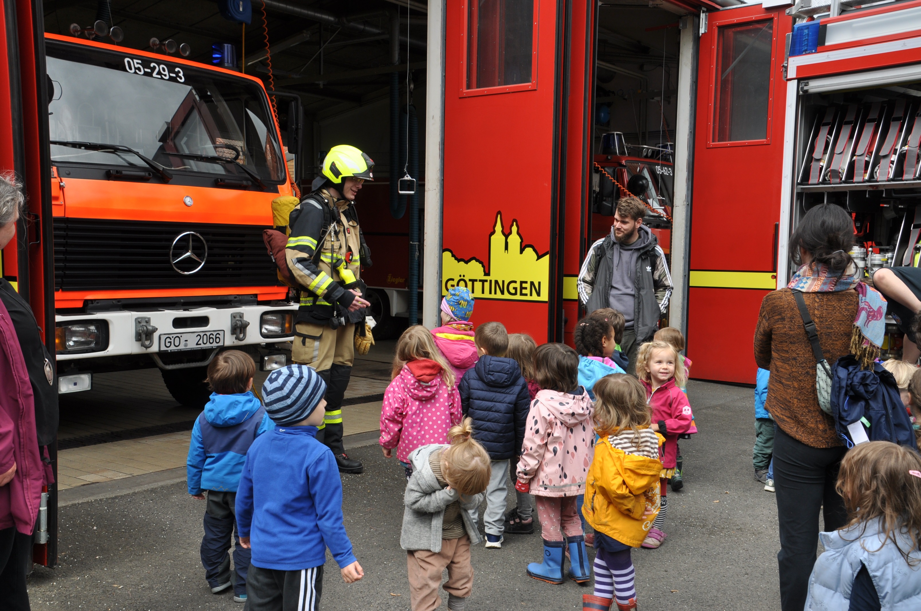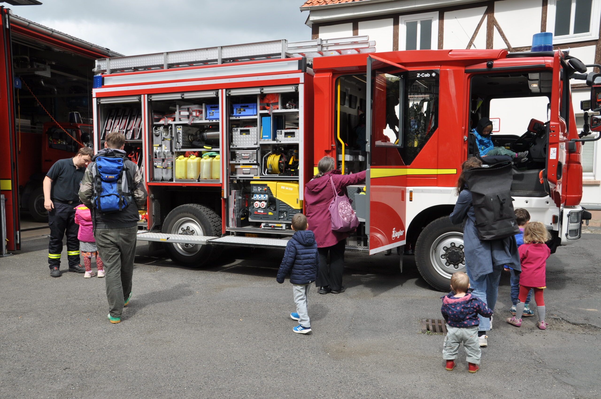 Im Rahmen der Brandschutzerziehung hatten die Ortsfeuerwehr Geismar am Mittwochvormittag, den 24. Mai Besuch vom Kinderkarten KEI (Kindergarten in Eigeninitiative), der an der „Von-Ossietzky-Straße“ liegt, bekommen. Acht Betreuer und Eltern sowie 22 Mädchen + Jungen im Alter von 4-5 Jahren hatten sich zur Besichtigung zu 10.45 Uhr angesagt. Drei aktive Mitglieder versuchten den Kindern etwas über die „Feuerwehr“ zu vermitteln. Da wir alle Tore der Fahrzeughalle geöffnet hatten, konnte man die Kinder schon von der Hauptstraße aus „da ist die Feuerwehr“ rufen hören. Anfangs haben wir uns im U-Raum versammelt, um erst einmal festzustellen, was die Kinder so über das Thema Feuerwehr wissen und das war bereits eine Menge. Jeder kannte die Rufnummer 112 und die Kinder hatten uns sogar ein Feuerwehrlied mitgebracht, dass sie mit großer Lautstärke uns vorgesungen haben. Lange waren die Kids nicht im U-Raum zu halten. Jeder wollte natürlich die Fahrzeuge und die Einsatzbekleidung, sowie die Gerätschaften sich anschauen. Wir haben dann unser LF 20 KatS aus der Halle rausgefahren und alle Geräteräume geöffnet. Natürlich durfte jeder auch mal ins „Feuerwehrauto“ einsteigen und sich als richtiger Feuerwehrmann fühlen. Interessant waren auch manche Gerätschaften wie z.B. die Strahlrohre. Im Laufe der Vorstellung durften die Kids sich auch mal mit Helm und Einsatzjacke ausrüsten, was manchen viel Spaß machte. Das Highlight war dann zum Schluss das Spiel mit dem Wasser. Jeder durfte noch mit einem D-Strahlrohr unserer Kübelspritze an unserer Spritzwand kleine „Flammen“ umschießen. Nach rund einer guten Stunde ging es wieder zurück zum Kindergarten und die Kids konnte man ansehen, dass der Besuch ihnen einen riesigen Spaß gemacht hat. Und ich muss auch für uns sagen: „So etwas könnte man jede Woche machen, da die Arbeit mit den Kids auch uns unwahrscheinlich viel gegeben hat.