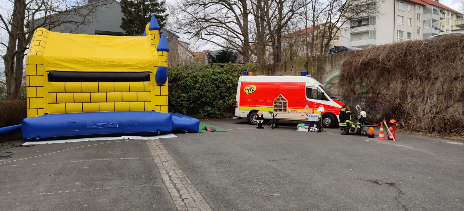 Die Stephanuskindertagesstätte veranstaltete am Samstag, den 07.März von 13.00 bis 17.00 Uhr einen Kinderkleidermarkt. Ein willkommener Anlass für eine Kameradin und zwei Kameraden der Ortsfeuerwehr Geismar hierbei gleich mal eine Brandschutzerziehung durchzuführen. Zusätzlich stellte der Feuerwehrverein noch unsere Hüpfburg an diesem Nachmittag zur Verfügung. Mit unserem vollgepackten KLAF machten sich die drei Aktiven auf den Weg zu Stephanusgemeinde. Dort wurde dann die Hüpfburg aufgebaut und betreut. Im Laufe des Nachmittags wurde dann auch unser Rauchhaus vorgestellt, erklärt und natürlich auch vorgeführt. Auch die persönliche Schutzausrüstung (PSA), die jeder Feuerwehrmann/-frau bei Einsätzen tragen muss, wurde ebenfalls vorgestellt, erklärt und Fragen dazu beantwortet. Alles in allem eine gelungene Möglichkeit, das Thema Brandschutz und Feuerwehr wieder einmal den Bürgerinnen und Bürgern Geismars näher zu bringen.