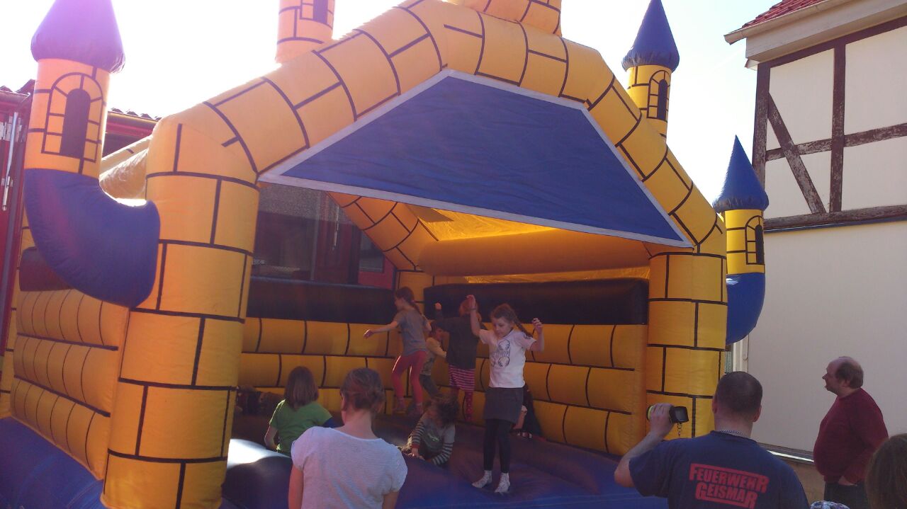 Zum Abschluss konnten sich die Kinder noch auf unserer Hüpfburg austoben, bevor mit Kaffee und Kuchen der Nachmittag gegen 17.00 Uhr beendet wurde. So wurde es für die Kinder wohl eine unvergessliche Geburtstagsfeier und für die Ortsfeuerwehr Geismar ein neuer Weg der Brandschutzerziehung. Eine Nachahmung anderer ist seitens der Ortsfeuerwehr durchaus wünschenswert. Eine kurze An- bzw. Nachfrage reicht. Wir sind jederzeit erreichbar.