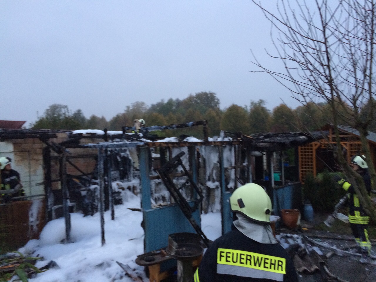 Am 11. Oktober 2014 wurde die Ortsfeuerwehr Geismar um 6:25 Uhr zu einem gemeldeten Gartenbudenbrand in der Kleingartenanlage in der Lotzestraße gerufen. Tatsächlich brannte in einem Garten die Gartenbude in voller Ausdehnung und das Dach eines angrenzenden Gartenhäuschens hatte ebenfalls schon Feuer gefangen. Das Feuer konnte schnell unter Kontrolle gebracht und gelöscht werden. Die Berufsfeuerwehr war ebenfalls mit ihrem Tanklöschfahrzeug vor Ort und übernahm die Brandbekämpfung bei der zweiten Gartenbude. Obwohl es nur eine Gartenbude war wurden hinterher noch einige Glutnester gefunden und bekämpft. Der Einsatz war für die OF Geismar um ca. 9:30 Uhr beendet. Im Einsatz waren das TroTLF, TLF und LF 8.