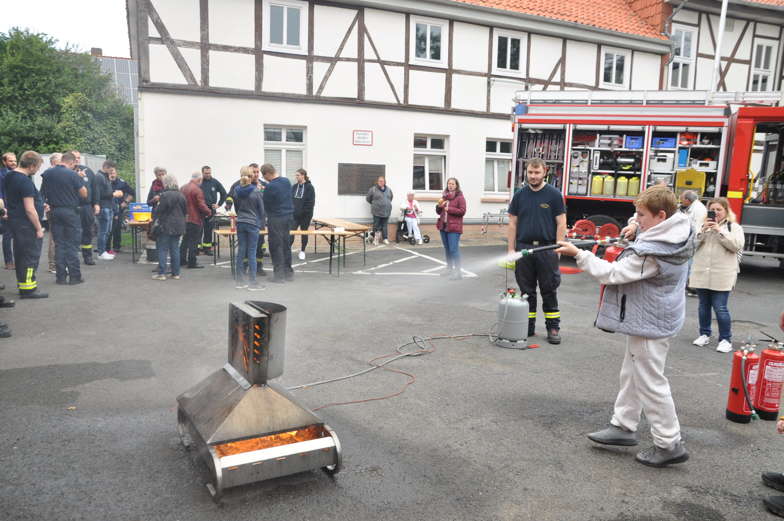 Zu Gast waren auch Ortsbürgermeister Uwe Löding, Teile des Ortsrates, unser Oberbürgermeister a.D. Wolfgang Meyer mit Frau und viele interessierte Geismaraner Bürger, die sich bei dieser Gelegenheit über die Technik der OF Geismar informieren konnten. Gleichzeitig suchten Manchen aber auch die Nähe zu Göttingens Oberbürgermeisterin und kamen dann auch mit Ihr ins Gespräch. Für das leibliche Wohl war auch gesorgt. Es gab Bratwürstchen und Grillkäse vom Holzkohlengrill.
