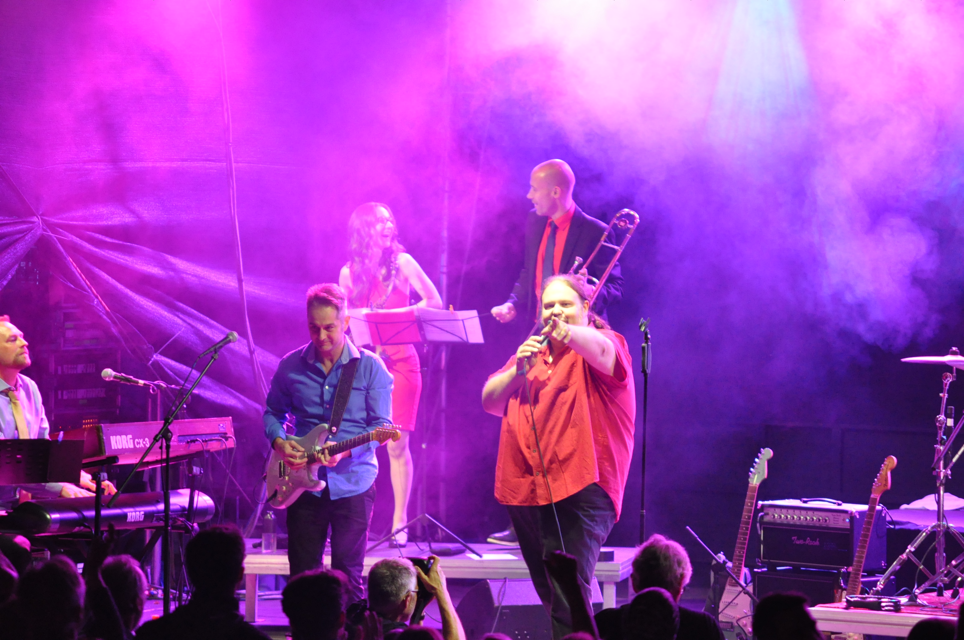 Da in diesem Jahr uns das Wetter mit der lang anhaltenen Trockenheit sehr überraschte, benötigten wir zur Absicherung der Veranstaltung und der doch erhöhten Waldbrandgefahr Unterstützung der OF Weende mit Ihrem TLF 8 und der Berufsfeuerwehr mit Ihrem TLF 2000 Waldbrandunimog. Zusätzlich war noch ein leitender Beamter der BF als Verbindungsmann vor Ort. Die MTW`s standen wie jedes Jahr wieder den Künstlern als Fahrbereitschaft zur Verfügung. Neben zwei Vorgruppen waren die Highlights am Freitag vor ausverkauften Haus „The Dire Straits Experience, feat.Chris White“ und die Formation „G-Fonics“ um Ihren Frontmann Sascha Münnich.