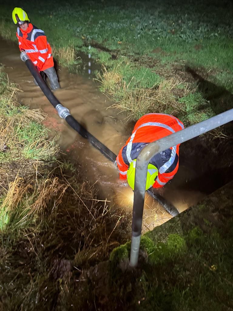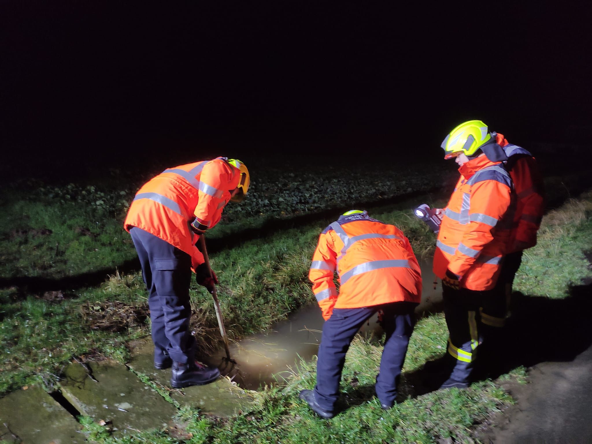 Am späten Donnerstagnachmittag, den 04.Januar rückten 7 Einsatzkräfte der Ortsfeuerwehr Geismar mit unserem LF 20 KatS um 17.10 Uhr zu einer Hilfeleistung im Bereich „Im Bruche“ aus. Dort waren die Wassergräben längst der Straße teilweise so voll Wasser, dass eine Überprüfung der Gräben unabwendbar war. Teilweise mussten die Durchlässe in den Gräben von Hand von Unrat befreit, oder das gestaute Wasser abgepumpt werden, damit ein einwandfreier Durchlauf wieder gewährleistet war. Gegen 20.00 Uhr war auch dieser Einsatz wieder beendet.