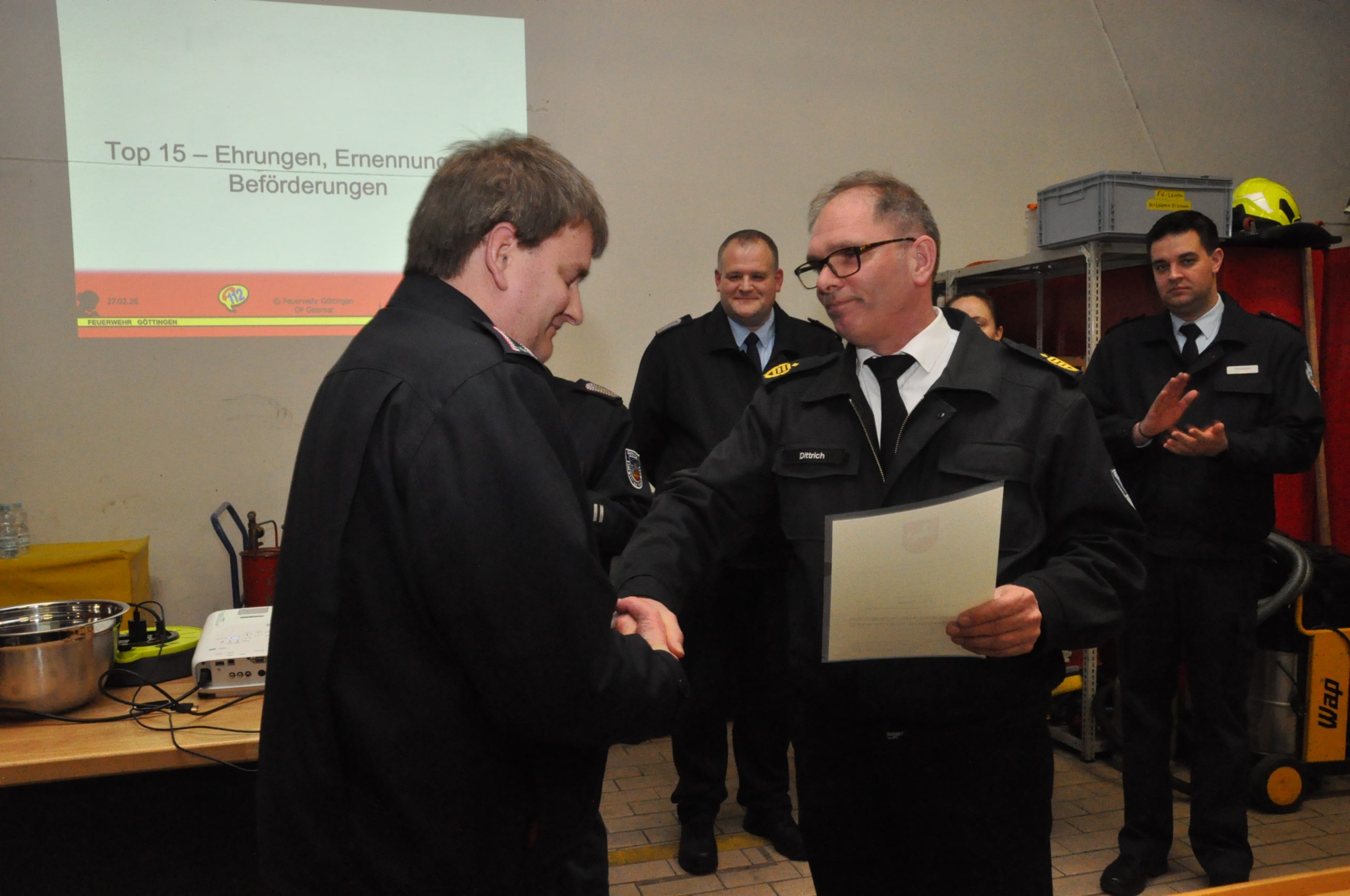 Am Ende des Jahres 2025 waren 57 Kameradinnen und Kameraden aktiv dabei. Derzeit haben wir 5 Neuzugänge, die Interesse an der Mitarbeit in der Feuerwehr haben. Insgesamt hatten wir im letzten Jahr 88 Einsätze, die sich in 12 Brandeinsätze, 24 Hilfeleistungen/Bereitschaften, 9 Fehlalarme und 43 Brandsicherheitswache aufteilen. Zusätzlich wurden folgende Lehrgänge, wie QS1 und QS2, Sprechfunk- Maschinisten-und Atemschutzlehrgang vor Ort und Leiter einer Feuerwehr, Zugführer und Gruppenführer an der NLBK in Celle, erfolgreich absolviert. Außerdem standen viele Aktivitäten wie z.B. das Osterfeuer, die Konfirmand*innen der Stephanus Gemeinde das Ehrenamt bzw. die Feuerwehr zeigen, Unterstützung eines Nach-Ori-Marsches des Feuerwehrvereins der JF der Stadt Göttingen, bei der „Tour de Energie“ mit Straßensperrungen unterstützt, mit 2 Gruppen an den Stadtleistungswettbewerben erfolgreich teilgenommen, bei Bürgertreff des Ortsrates mit Grillen und Ausgabe von Getränken unterstüzt und vieles mehr. Für dieses Jahr freuen wir uns auf unser neues Fahrzeug, ein HLF 20, das wir Mitte des Jahres bekommen und das es endlich mit unserem neuen Feuerwehrhaus mit dem Architektenwettbewerb weiterging und wir uns im April auf das erste „Modell“ freuen können.