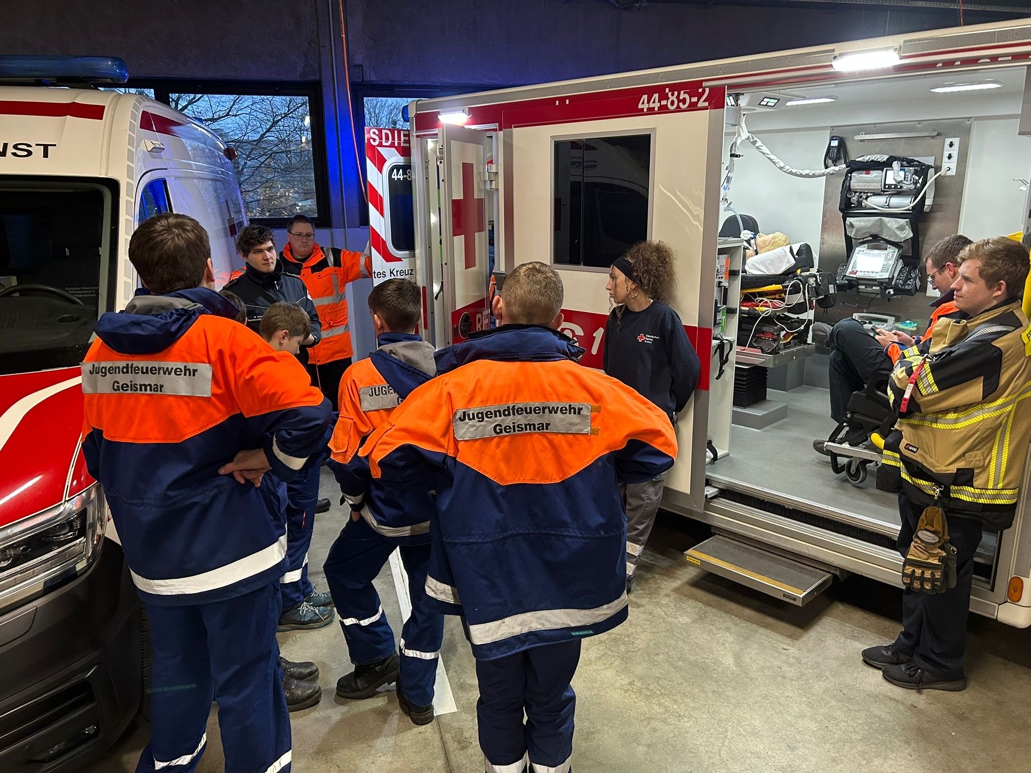 Am Samstag, den 15. November war großer Jugendfeuerwehrtag beim DRK Kreisverband Göttingen/Northeim an der Zimmermannstraße in Göttingen. Besichtigt werden konnte die DRK Bereitschaft Göttingen. Teilgenommen haben Jugendliche aus den Jugendfeuerwehren Geismar, Esebeck, Weende, Herberhausen und Grone. Die JF Geismar war mit sechs Jugendlichen und drei Betreuern daran beteiligt. Die Verantwortlichen dort hatten sich für die Kids einiges einfallen lassen. So gab es fünf verschiedene Stationen mit den Themen Logistik und Technik, Besichtigung und Erklärung des Inneren eines Rettungswagen (RTW), Erklärung und Mitmachaktion bei der stabilen Seitenlage und der Herzdruckmassage. Auch konnte man sich anschauen, wie eine Patientenablage aufgebaut wird. Es war ein toller, lehrreicher und unvergesslicher Tag für die Jugendlichen. Nach gut 3 Stunden ging es wieder zurück zum Standort Geismar.
