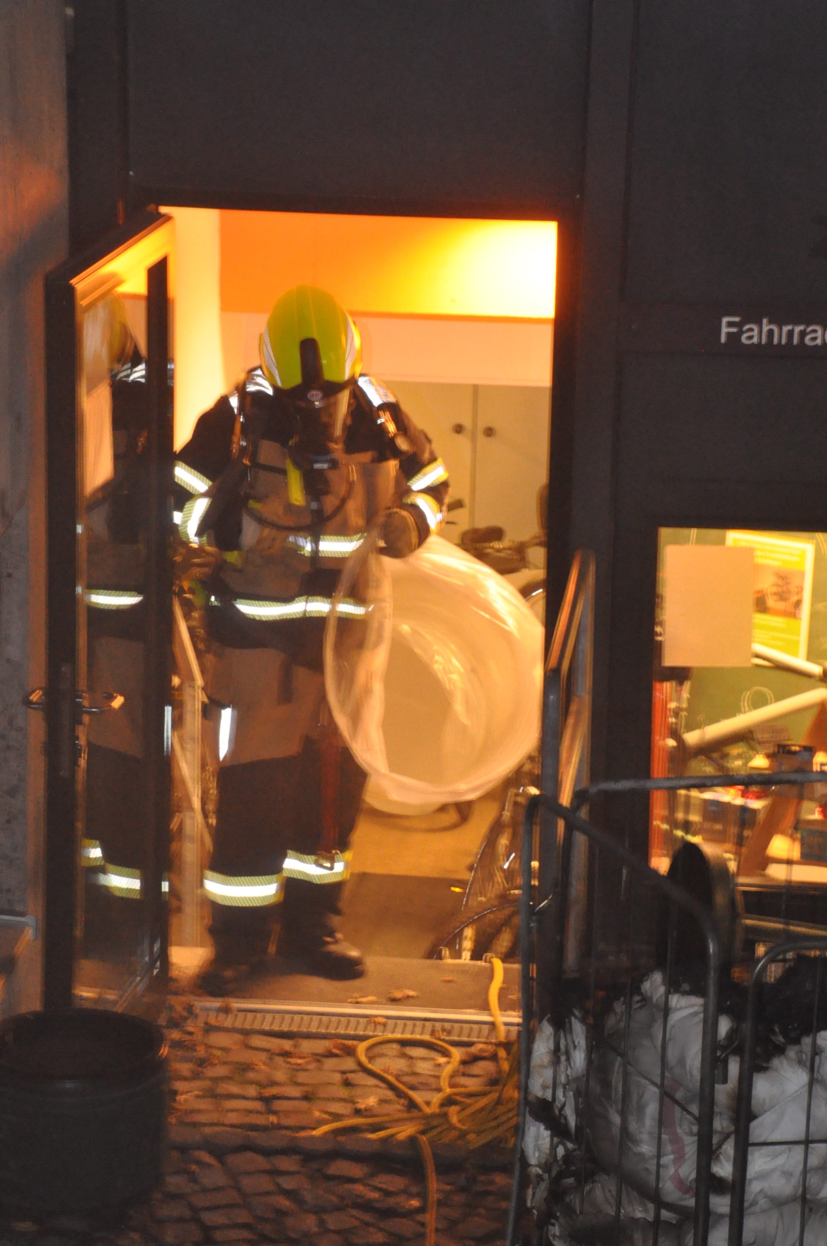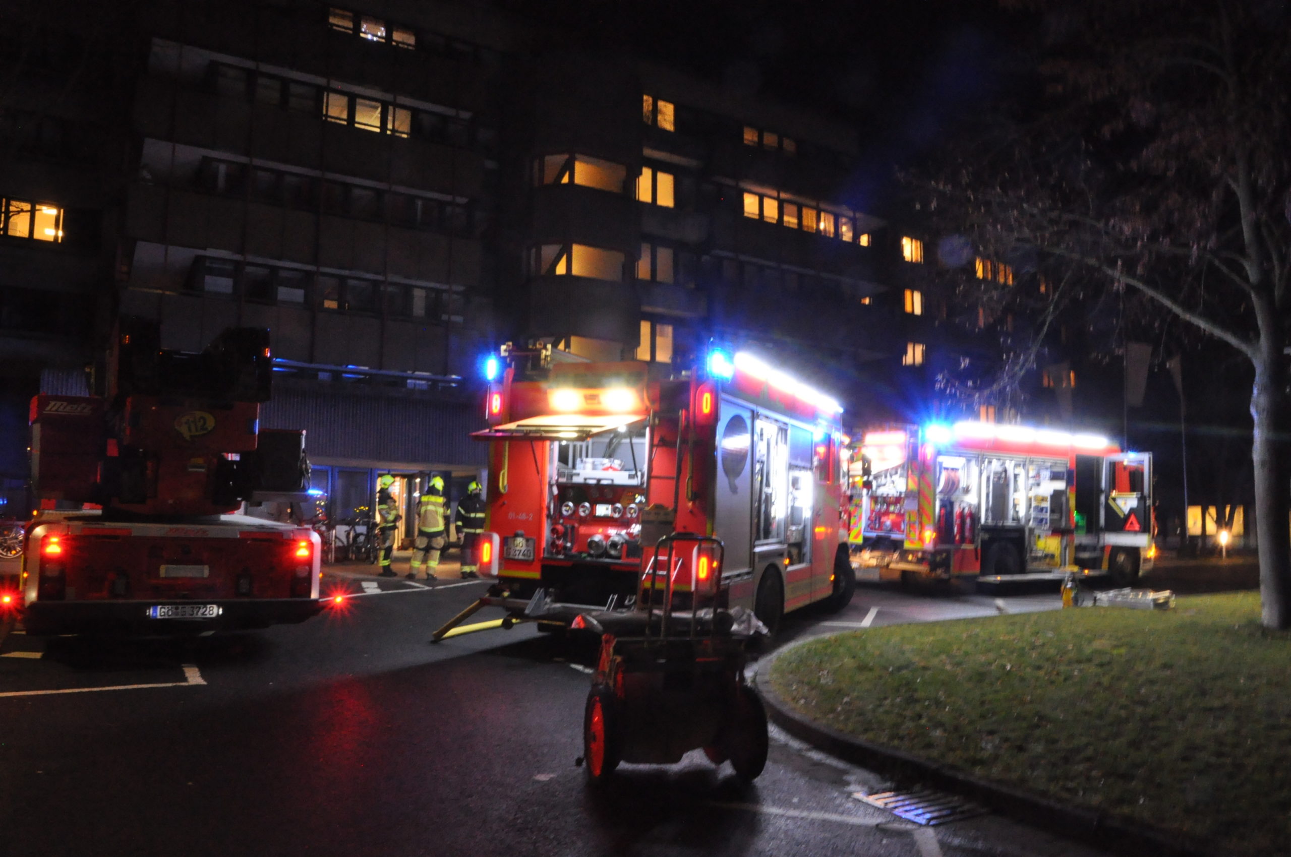 Vor Ort wurde festgestellt, das zum Glück „nur“ ein Wäschecontainer brannte, der vom Angriffstrupp schnell ins Freie gebracht und abgelöscht wurde. Probleme bereitete aber die starke Rauchentwicklung, die sich bereits auf mehrere Etagen ausgebreitet hatte. Durch eine intensive Druckbelüftung von mehreren Seiten, an der auch unser LF 20 beteiligt war, konnte auch diese Gefahr gebannt werden.