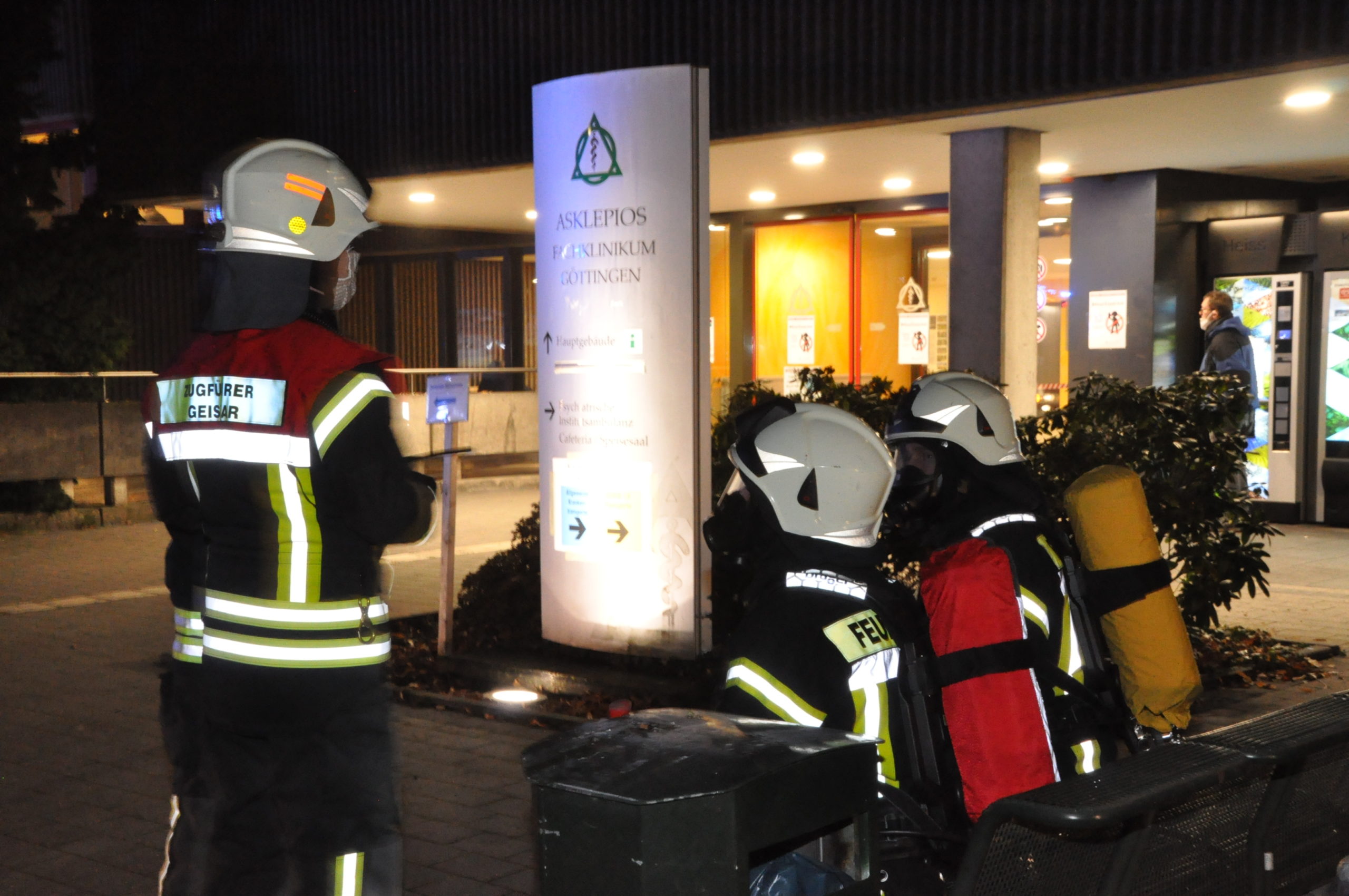 Um 18.55 Uhr wurden wir über DME zur Unterstützung des Löschzuges der Berufsfeuerwehr und des HLF 3 der Wache Klinikum zu einem Kellerbrand in der Asklepios-Fachklinik am Rosdorfer Weg alarmiert. Die Meldung hieß: „Kellerbrand mit Menschenrettung“. Die OF Geismar rückte mit dem LF 20 KatS, dem TroTLF 16 und dem MTW mit einer Gesamtstärke von 1/21 aus.