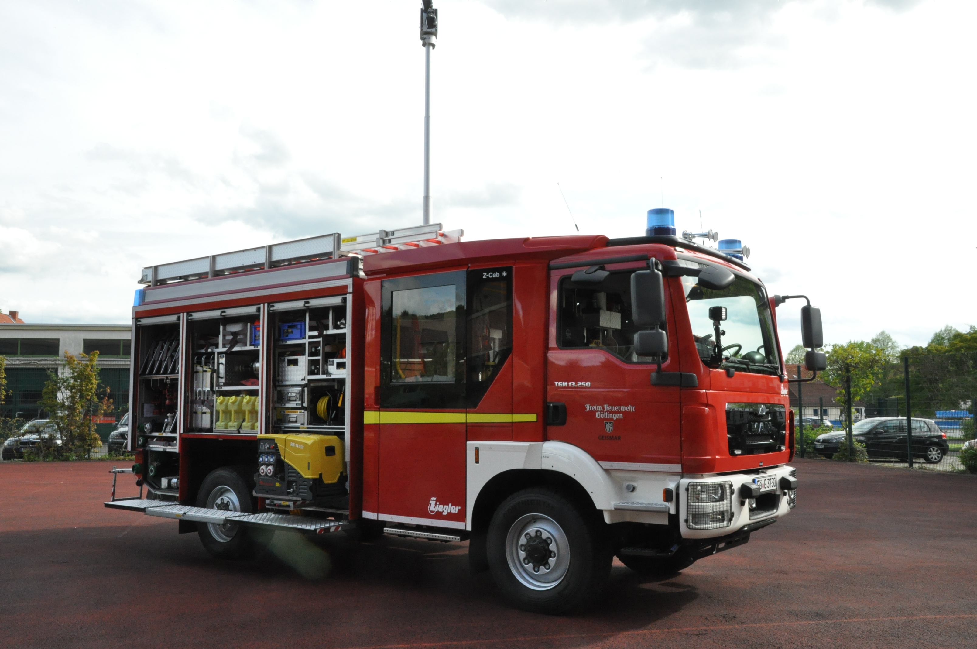 Das neue Löschfahrzeug ist auf einem Fahrgestell MAN TGM 13.250 aufgebaut. Seine Motorleistung beträgt 220 KW/250 PS, hat ein automatisches Schaltgetriebe und einen Allradantrieb mit zuschaltbaren Differenzialsperren. Der Aufbau wurde bei der Firma Ziegler gefertigt. Zur Beladung gehören u.a. ein 1.000 Liter Löschwassertank, eine Feuerlöschkreiselpumpe mit einer Leistung von 2.000 Liter/Minute, ergonomische Mannschaftskabine für eine Löschgruppe (1/8),Stromgenerator mit 13 kVA, ausfahrbarem Lichtmast, Umfeldbeleuchtung, heckseitige Verkehrswarneinrichtung und einer zusätzlichen Tragkraftspritze PFPN 10-1500. Die Kosten für das Fahrzeug betrugen 340.000 € und wurde vom Land Niedersachsen /140.000 €) und der Stadt Göttingen (150.000 €) getragen. Das neue Fahrzeug ersetzt ein altes LF 16-TS, Mercedes Benz Baujahr 1986, das vor einiger Zeit schon wegen Rost an tragenden Teilen außer Dienst gestellt werden musste und schmerzlich von uns vermisst wurde.