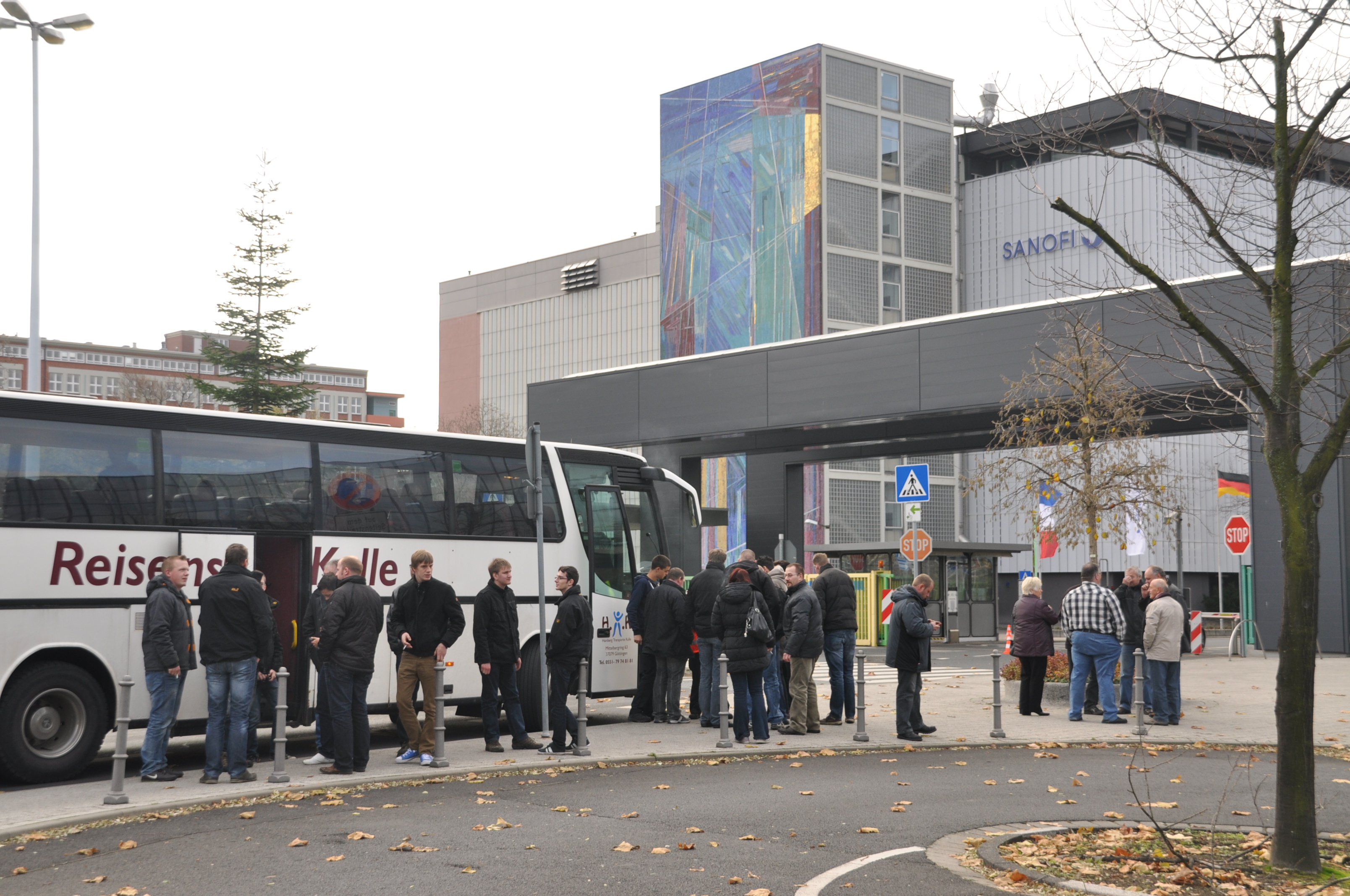 Der Start des Busses mit seinen 42 Teilnehmern war eigentlich für 06.00 Uhr am Feuerwehrhaus in der Kerllsgasse geplant. Durch ein „Mißverständnis“ ging es dann aber erst um kurz nach 07.00 Uhr auf die Reise. Um 10.30 Uhr kamen wir am Industriepark in Höchst an und wurden sehr freundlich von der diensthabende Wachabteilung der Wache 1 der Werkfeuerwehr empfangen. Eine Einführung über den Industriepark sowie über die zwei Wachen der Werkfeuerwehr mit Ihrer über 130-jährigen Geschichte wurde uns an Hand eines Vortrages des techn. Leiters im U-Raum der Wache I gegeben. In drei Gruppen ging es dann auf Entdeckertour durch die Leitzentrale,den technischen Werkstätten und der Fahrzeughalle mit den vielen sehr interessanten Sonderfahrzeugen. Zu jedem Fahrzeug erhielten wir eine genaue Beschreibung und Erklärung zur Verwendung bzw. Beladung. Auf dem Hof der Wache hatte man für uns extra die beiden „Prunkstücke“ aufgebaut. Hierbei handelte es sich um einen Gelenkmast GM53 und ein Dekon-Fahrzeug. Es war sehr beeindruckend und man konnte sich überhaupt nicht von der Besichtigung der Fahrzeuge trennen.