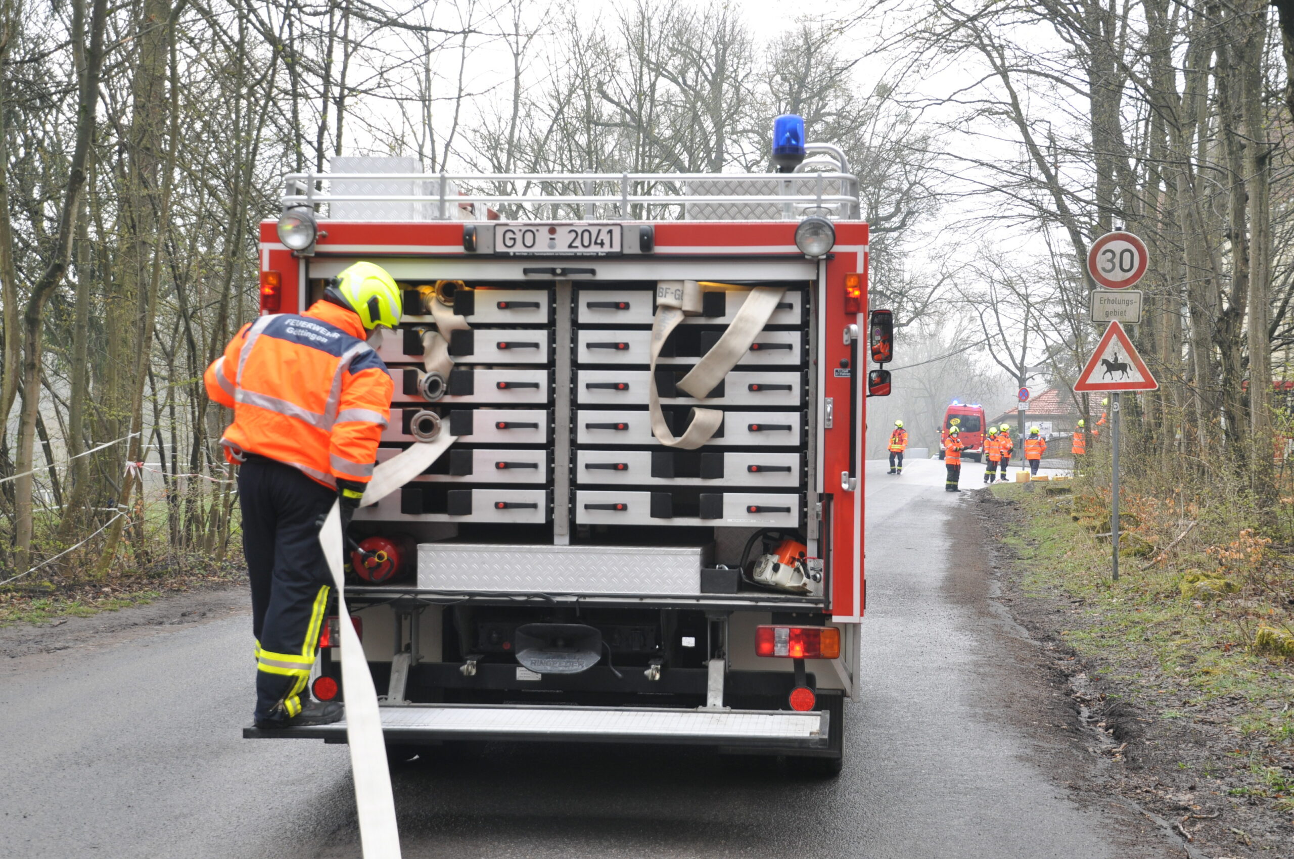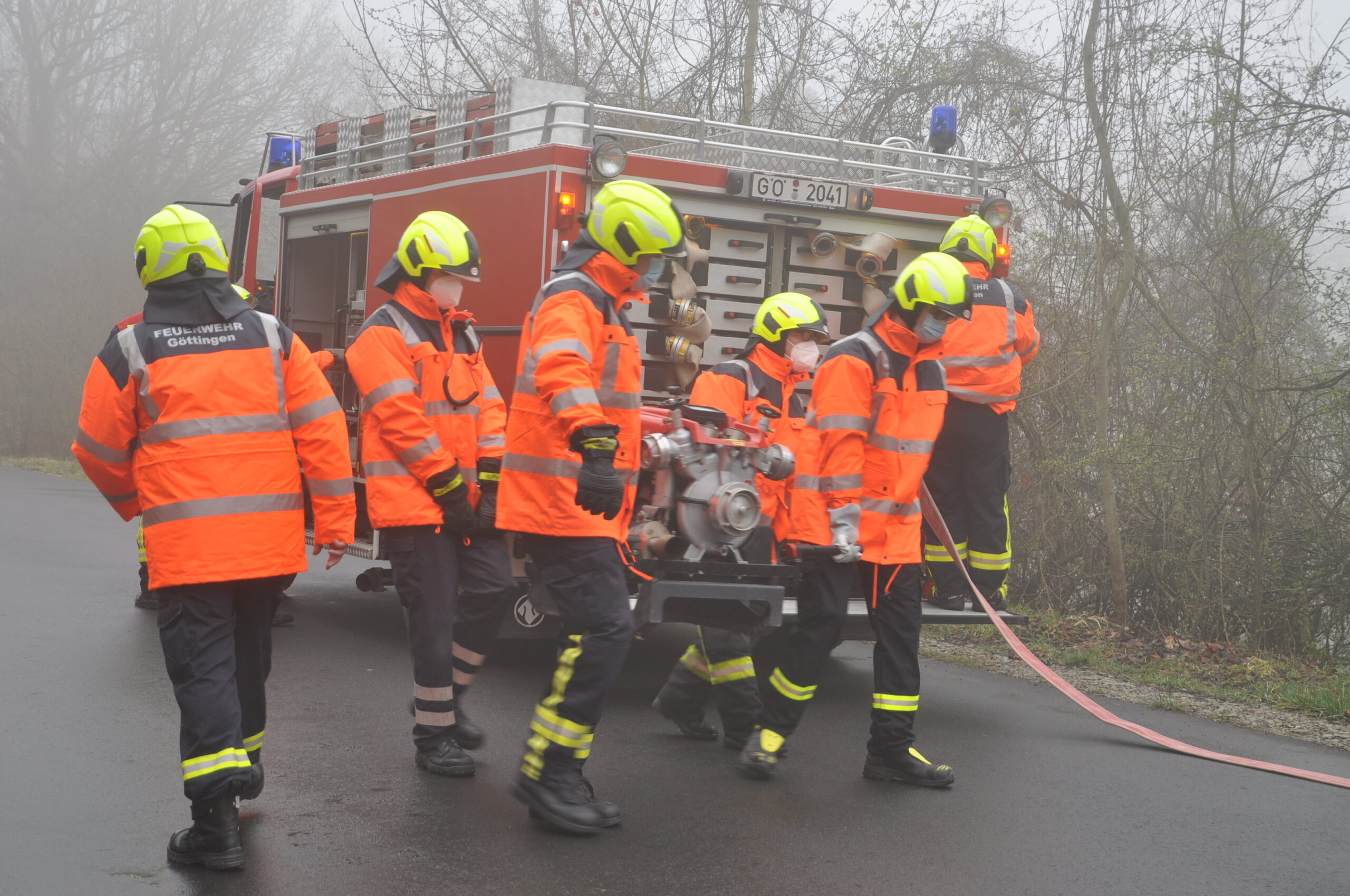 Am Samstag, den 10. April fand, trotz Corona, eine praktische Übungseinheit der Ortsfeuerwehr Geismar mit dem „Wasserförderzug“ am Kehr im Göttinger Wald statt. Natürlich unter genauen und strengen Hygienevorschriften trafen sich gegen 08.00Uhr insgesamt 25 Aktive am Feuerwehrhaus. Unter Leitung von Ortsbrandmeister Dirk Tetztlaff und Zugführer Patrick Klapproth ging es dann mit allen Fahrzeugen (MTW, LF 20KatS, TroTLF 16, SW 2000 und zusätzlich der GW-Logistik I der Berufsfeuerwehr) in den Göttinger Wald. Die Gebäude und die angrenzenden, ausgiebigen Waldgebiete sind für solche Übungen natürlich super geeignet und liegen ja auch in der AAO der OF Geismar. Angenommen wurde ein Waldbrand direkt am Kehr, der auf die angrenzenden Gebäude überzugreifen drohte. Die insgesamt 90.000 Liter Löschwasserreserve in 2 Zisternen, die sich am Kehr befinden, reichen für solche „Großeinsätze“ nicht lange aus. Daher sollte eine rund 1.100 Meter lange B-Förderleitung mit einem Höhenunterschied von 59 Metern verlegt werden, von einem Hydranten auf der oberen Hälfte der Bismarckstraße, in Höhe des KWP`s gelegen, bis hin zu den Gebäude am Kehr, so der Auftrag. Als Verstärkerpumpen waren zwei TS und am Ende die Pumpe von unserem LF 20 KatS vorgesehen. Das Optimum, was errreicht werden sollte, waren 800 Liter/Minute bei 8 bar Eingangsdruck am LF. Doch wie das bei Übungen meistens der Fall ist und warum diese daher so wichtig sind, zeigte sich auch heute. Am Ende kamen leider nur 400-500 Liter an und auch der Eingangsdruck ließ zu wünschen übrig. Hier muss das Ganze nochmal aufgearbeitet und analysiert werden, ob eine Wasserförderung von den Zietenterassen her besser ist, oder was man bei der Strecke über die Bismarckstraße noch verbessern kann. Im Laufe des Tages wurde, während dIe Wasserförderung lief, noch verschiedene Möglichkeiten ausprobiert, um vielleicht das Ergebnis doch noch zu verbessern. Außerdem wurde in der Zwischenzeit auch der SW 2000 auf der Wache der Berufsfeuerwehr wieder mit neuen Schläuchen bestückt, sodass dieser jederzeit wieder für Realeinsätze verfügbar war. Um jegliche Spekulationen vorzubeugen: Das Wasser, welchses in der ganzen Zeit gefördert wurde, wurde nicht sinnlos „verplempert“, sondern gleich wieder als Füllung einer der Zisternen zugeführt. Gegen 16.30 Uhr war dann Übungsende und alle Fahrzeuge rückten wieder in den Standort einsatzbereit ein.