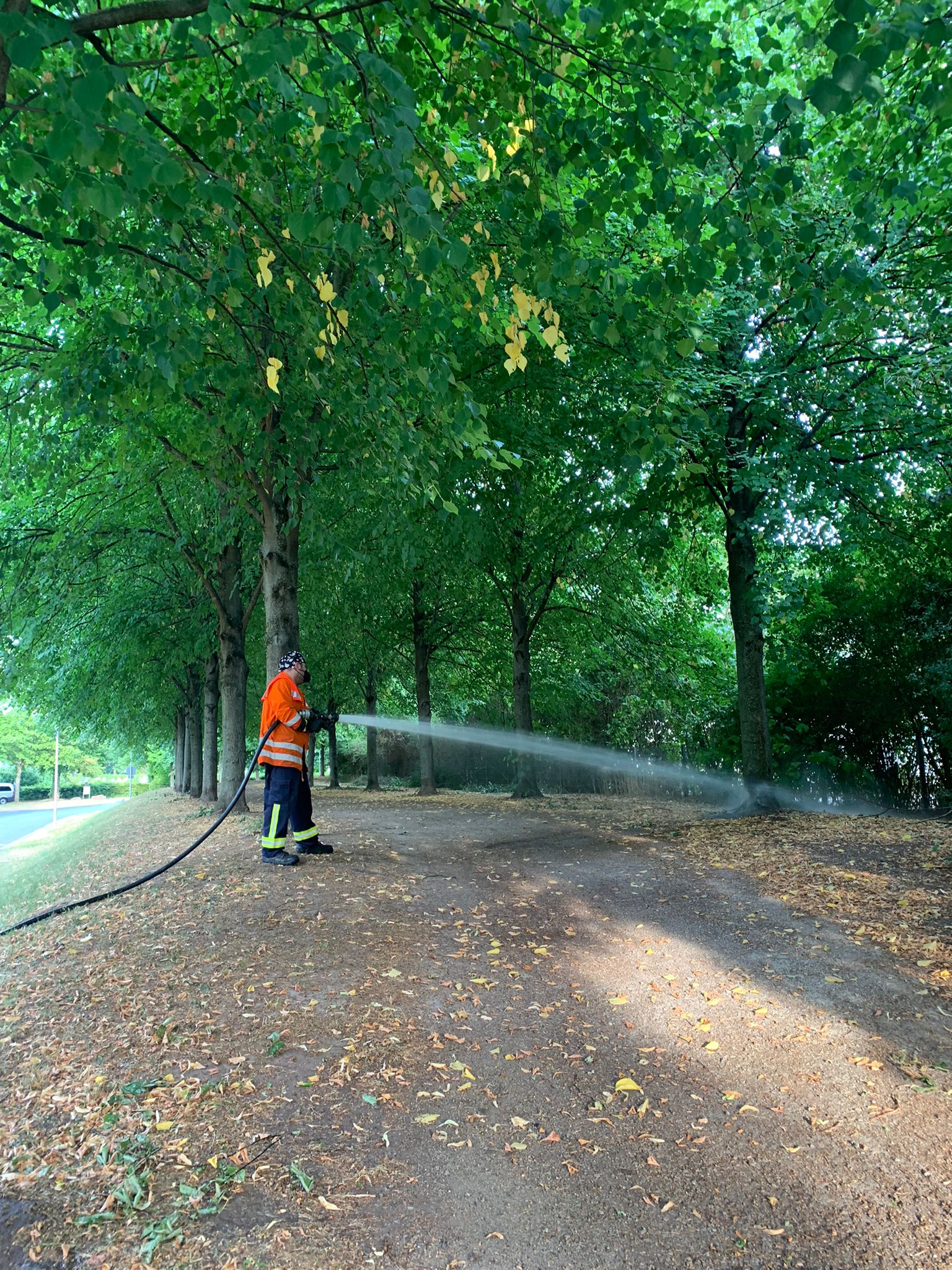Auch in diesem Jahr unterstützt die Ortsfeuerwehr Geismar wieder das Göttinger Grünflächenamt während der großen Hitzeperiode beim Bewässern von jungen Bäumen. In der vergangenen Woche fuhren unser TroTLF 16 und unser LF 20 Kats bereits Bewässerungseinsätze im Bereich Geismar. Am gestrigen Freitag, innerhalb des Dienstabends, fuhr erneut das TroTLF 16 zum Parkplatz Eiswiese am Göttingen Erlebnisbad und bewässert dort die Bäume auf dem Wall. Wenn die Trockenheit weiter so anhält, werden wir mit Sicherheit noch weitere Einsätze dieser Art in und um Geismar fahren.