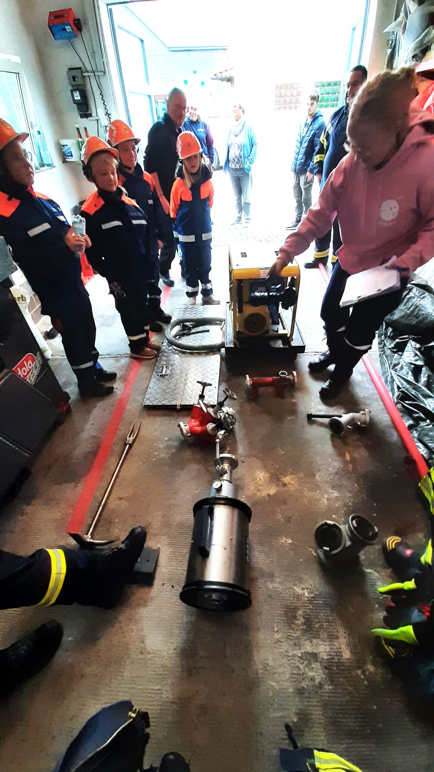 Aufgeteilt in drei Gruppen (2 x 5 und 1 x 4) unterstützt von der Jugendfeuerwehr der Hausherren ging es gegen 11.00 Uhr dann zu einer „Dorfrallye“ mit 7 Stationen. Hier wurde das Wissen abgefragt, Schlauchkegeln mit einem doppelt aufgerollten B-Schlauch versucht, die Kenntnisse in Erster Hilfe überprüft, Knoten und Stiche angebracht, den „heißen Draht“ an einem Bauzaun mit einem Feuerwehrhelm nachgestellt, Gerätekunde überprüft und zum Schluss ein Löschangriff unternommen. Es hat einen heiden Spaß gemacht und am Ende waren alle drei Gruppen „Sieger“ und es gab einen wunderschönen Pokal für alle. Am Nachmittag gab es noch leckere grobe Thüringer Bratwurst. Gegen Abend ging es dann für alle wieder nach Hause. Im nächsten Jahr wird wohl der „Geismar-Pokal“ hoffentlich in Geismar/Rhön stattfinden.