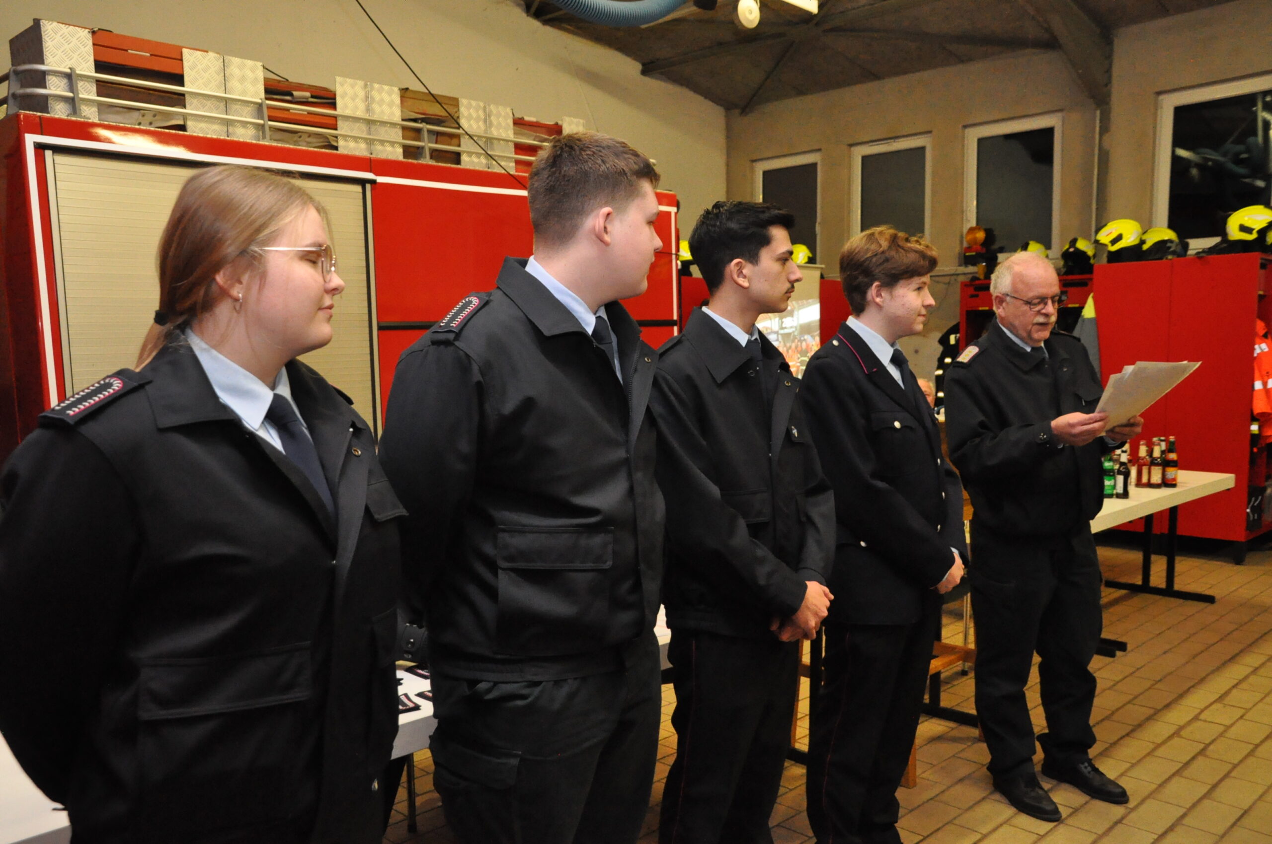 Pascal Sommerfeld wurde zum Brandmeister befördert, Patrick Wenzel zum Löschmeister, Sven Apel und Robert Meier zum 1. Hauptfeuerwehrmann sowie Carolin Koch zur Hauptfeuerwehrfrau. Von Anwärtern zum Feuerwehrmann wurden Aaron Pick, Aaron Tetztlaff, Marlon Schreiber und Till Schröder bzw. zur Feuerwehrfrau Nele Vespermann befördert. Eine Wiederwahl gab es bei den drei Kassenprüfer Freddy Trettin, Thomas Vollrodt und Uli Seek , die auch im kommenden Jahr die Kassen prüfen werden.