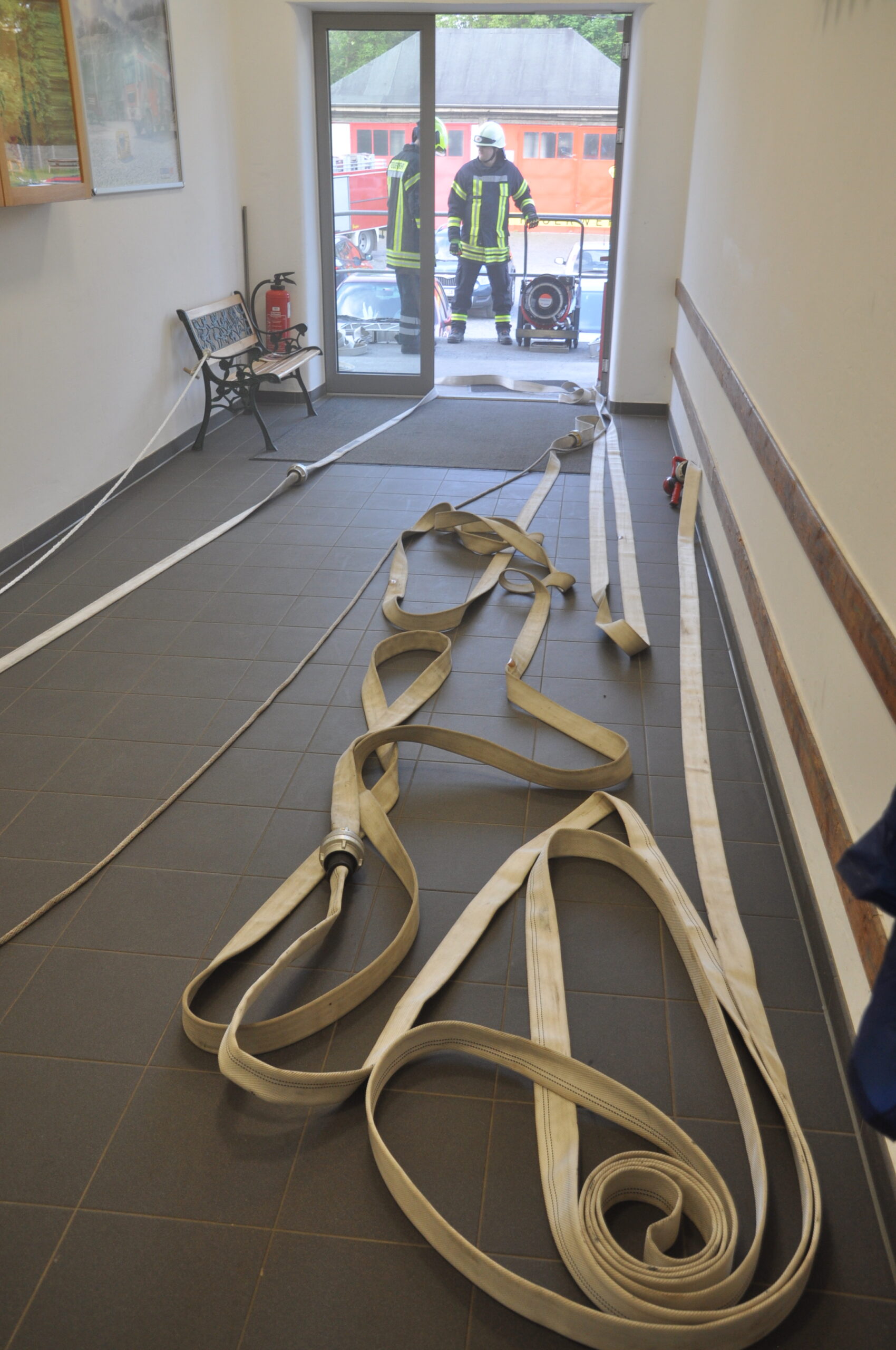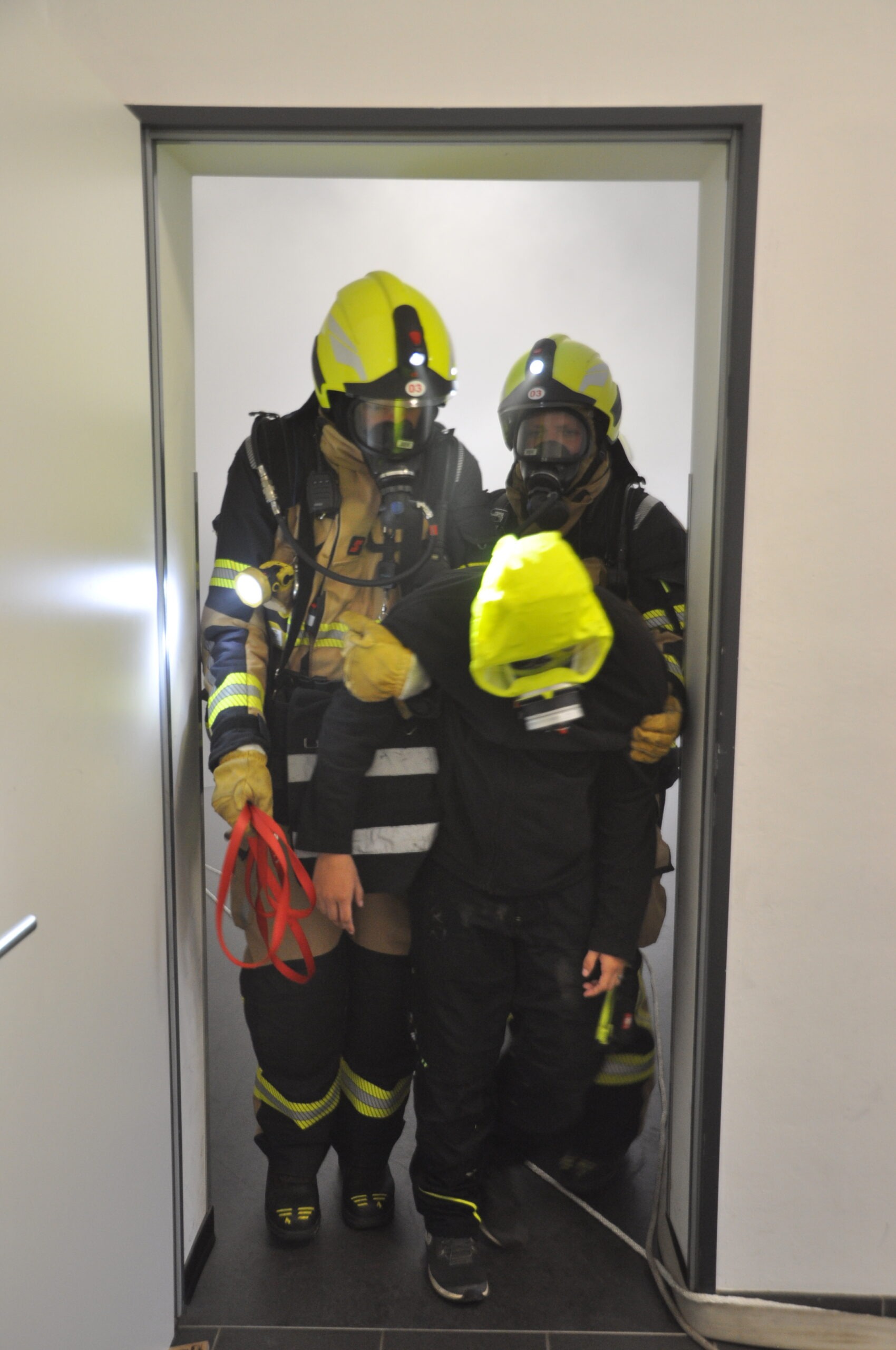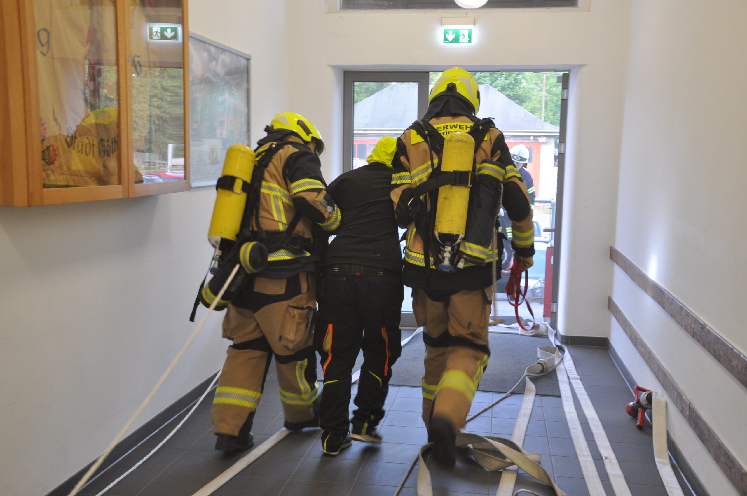 An diesem Abend war die OF Geismar zu Gast in den Räumen der OF Stadtmitte. Der Beamer, der im U-Raum unter der Decke angebracht war, war in Brand geraten. Durch die Flammen „tropfte“ das Deckenmaterial auf die Einrichtung und verursachte dadurch eine starke Rauchentwicklung. Insgesamt befanden sich noch fünf Personen in den Räumen. Eine stark hustende Person wurde gleich im Eingangsbereich gefunden, zwei Personen konnten per Steckleiter gerettet werden und eine Person wurde in dem völlig verqualmten U-Raum durch den Angriffstrupp gefunden und nach draußen befördert. Hier wurde eine sofortige Herzdruckmassage vorgenommen, bis der Rettungsdienst an der EST eintraf. Die fünfte Person konnte nach einer etwas längeren Suche im Küchenbereich gefunden werden und mittels Fluchthaube ins Freie begleitet werden. An dieser Übung nahmen rund 30 Personen der OF Geismar mit LF 20 Kats, TroTLF 16, SW2000 und dem MTW teil. Unser Dank gilt der Ortsfeuerwehr Stadtmitte, die nicht nur Ihre Räume zur Verfügung gestellt hatten, sondern auch die Verletztendarsteller stellten.