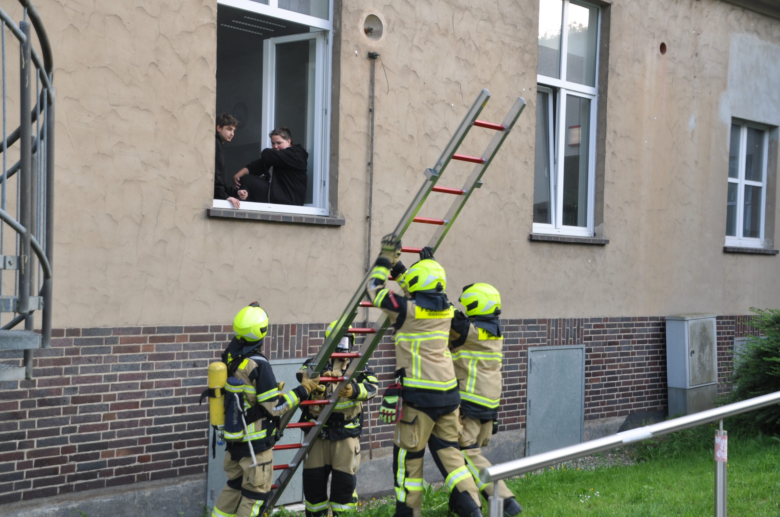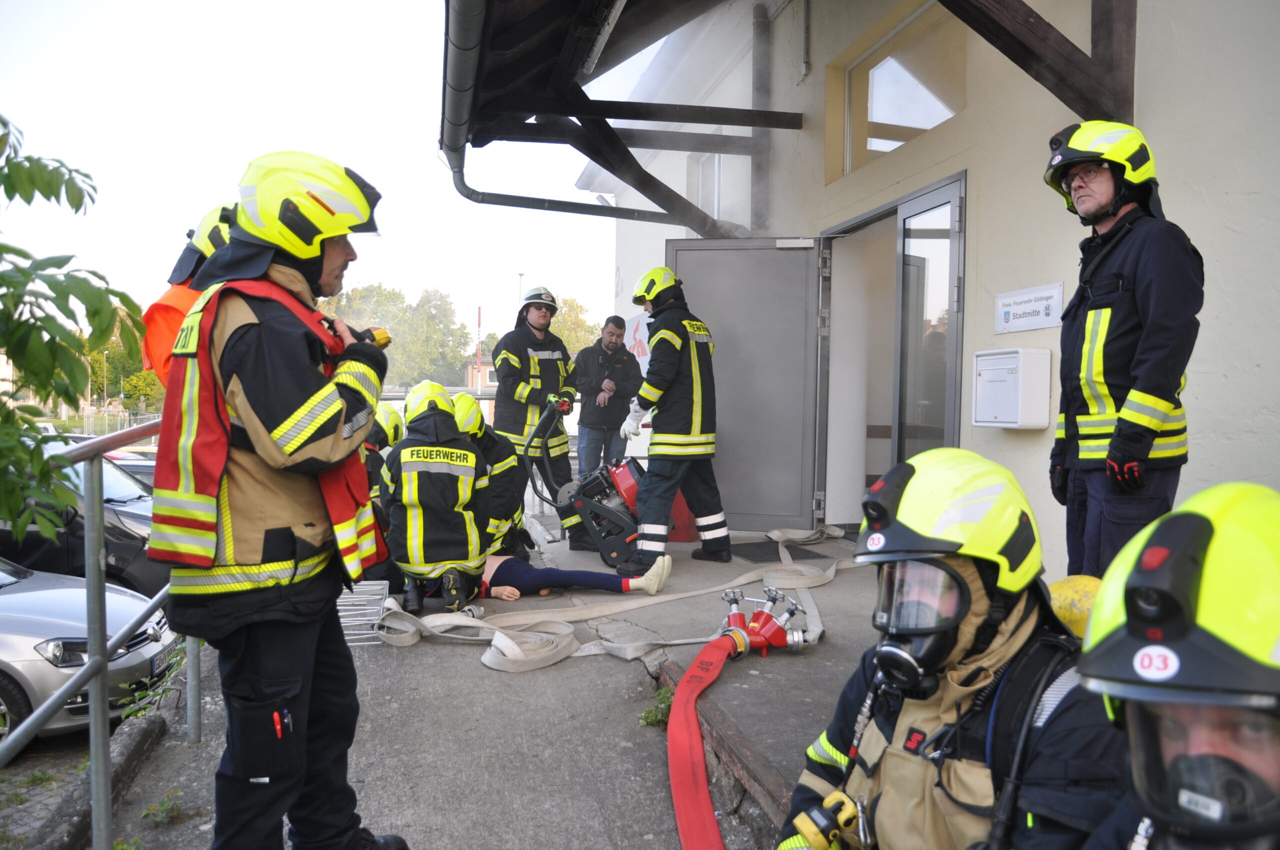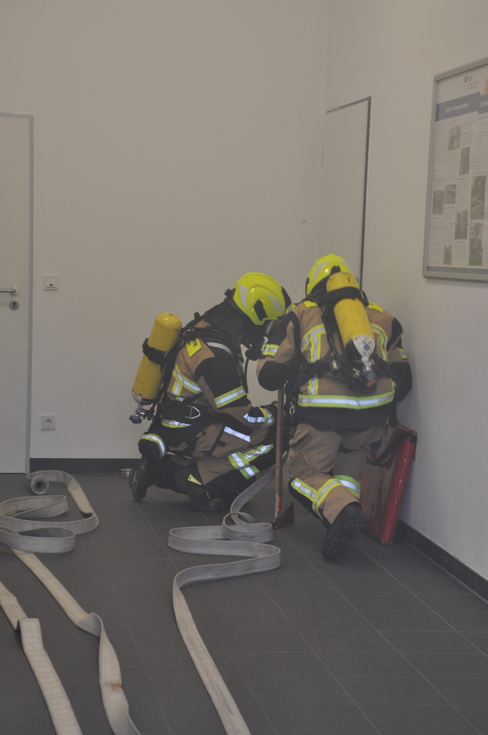An diesem Abend war die OF Geismar zu Gast in den Räumen der OF Stadtmitte. Der Beamer, der im U-Raum unter der Decke angebracht war, war in Brand geraten. Durch die Flammen „tropfte“ das Deckenmaterial auf die Einrichtung und verursachte dadurch eine starke Rauchentwicklung. Insgesamt befanden sich noch fünf Personen in den Räumen. Eine stark hustende Person wurde gleich im Eingangsbereich gefunden, zwei Personen konnten per Steckleiter gerettet werden und eine Person wurde in dem völlig verqualmten U-Raum durch den Angriffstrupp gefunden und nach draußen befördert. Hier wurde eine sofortige Herzdruckmassage vorgenommen, bis der Rettungsdienst an der EST eintraf. Die fünfte Person konnte nach einer etwas längeren Suche im Küchenbereich gefunden werden und mittels Fluchthaube ins Freie begleitet werden. An dieser Übung nahmen rund 30 Personen der OF Geismar mit LF 20 Kats, TroTLF 16, SW2000 und dem MTW teil. Unser Dank gilt der Ortsfeuerwehr Stadtmitte, die nicht nur Ihre Räume zur Verfügung gestellt hatten, sondern auch die Verletztendarsteller stellten.